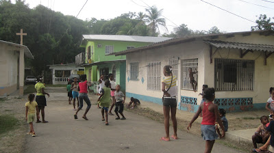 Puerto Lindo is one little side road around an ocean bay filled with sail boats. With one or two restaurants in peoples home, one small open air bar, a window where you can buy beer and snacks, and maybe 40 dwellings, it is extremely tranquil and beautiful. Kids by the dozens are playing in streets; jumping rope, dancing, and after dinner all running around eating what looked like octopus from clear plastic bags.